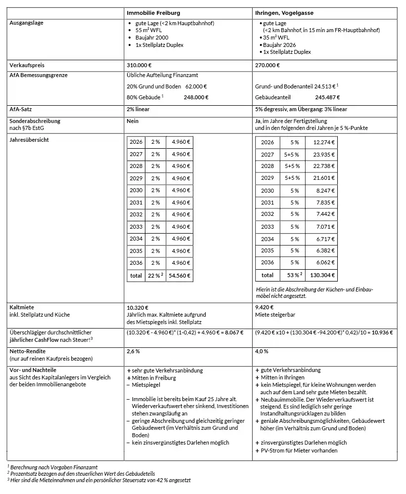 Wie erzielt ein Neubau-Immobilien-Investment im Freiburger Umland eine bessere Rendite als der Kauf einer Bestandsimmobilie im Freiburger Stadtgebiet?