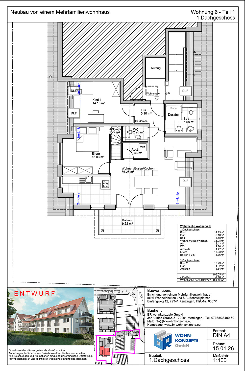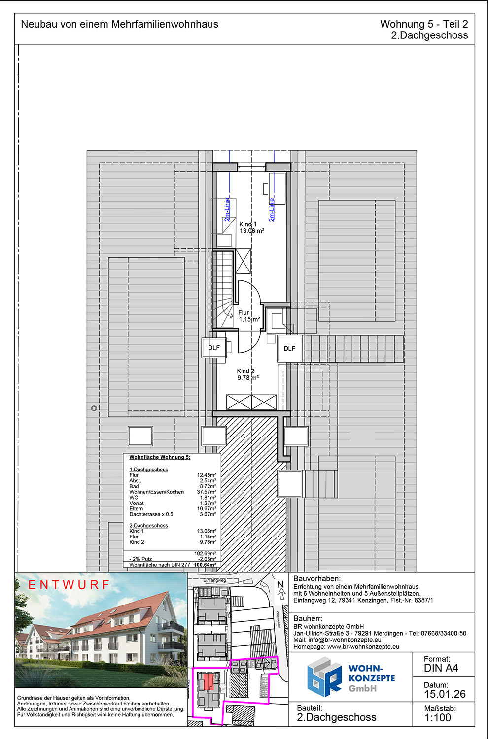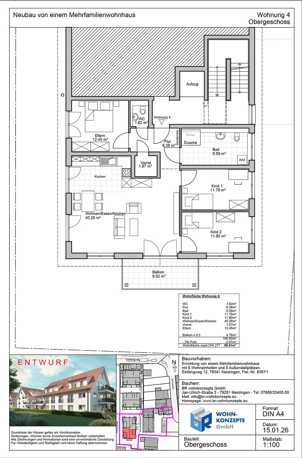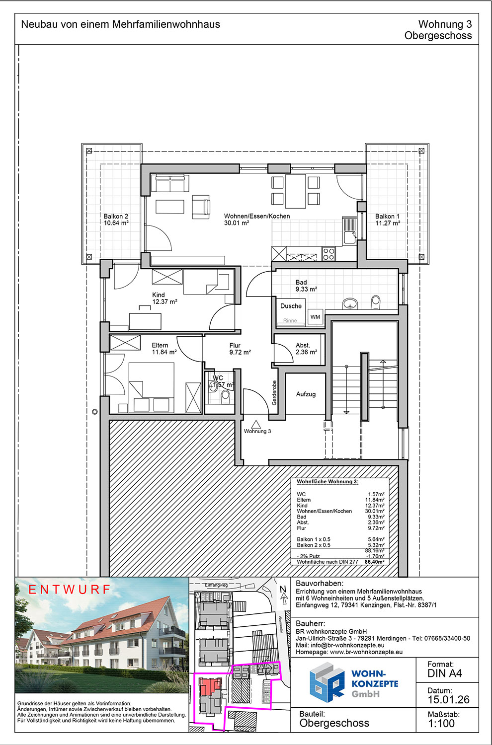 Derzeit entsteht im Einfangweg in Kenzingen ein Mehrfamilienhaus in zeitlos moderner Architektur. Das Gebäude umfasst sechs Wohneinheiten. Zu jeder Wohnung gehört eine Terrasse mit privatem Garten, ein Balkon oder eine Dachterrasse, wo Sie die warmen Tage genießen und sich Ihre persönliche Wohlfühloase schaffen können.