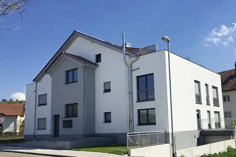 Die Wärmeerzeugung des Mehrfamilienhauses erfolgte über eine moderne Wärmepumpe, welche eine wegweisende und zukunftssichere Energiequelle für Ihr neues Zuhause ist. Die Wärmeverteilung wurde über eine Flächenheizung (Fußbodenheizung) realisiert. Diese Heizungsart kombiniert einerseits einen hohen Komfort mit niedrigen Heizkosten und bietet andererseits, durch das Einsparen sämtlicher Heizkörper, eine hohe Flexibilität bei der Möblierung.