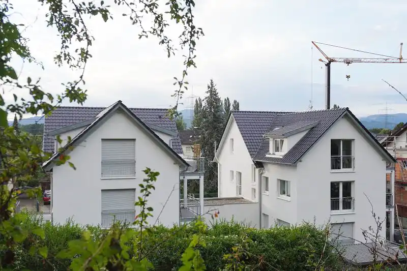 In Freiburg-Tiengen entstanden vier Doppelhaushälften in zeitlos moderner Architektur mit schönen Terrassen und privaten Gärten.