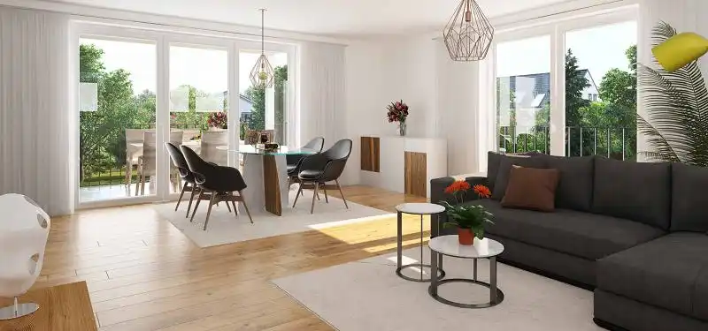 Der zeitlos moderne Stil des Baukörpers setzt sich in der hochwertigen Ausstattung der Wohneinheiten fort. Durchdachte und ausgesuchte Materialien verbinden sich mit großzügig geschnittenen Fenstern und der lichterfüllten Atmosphäre zu Wohn- und Lebensräumen mit besonderem Wohlfühlambiente.
